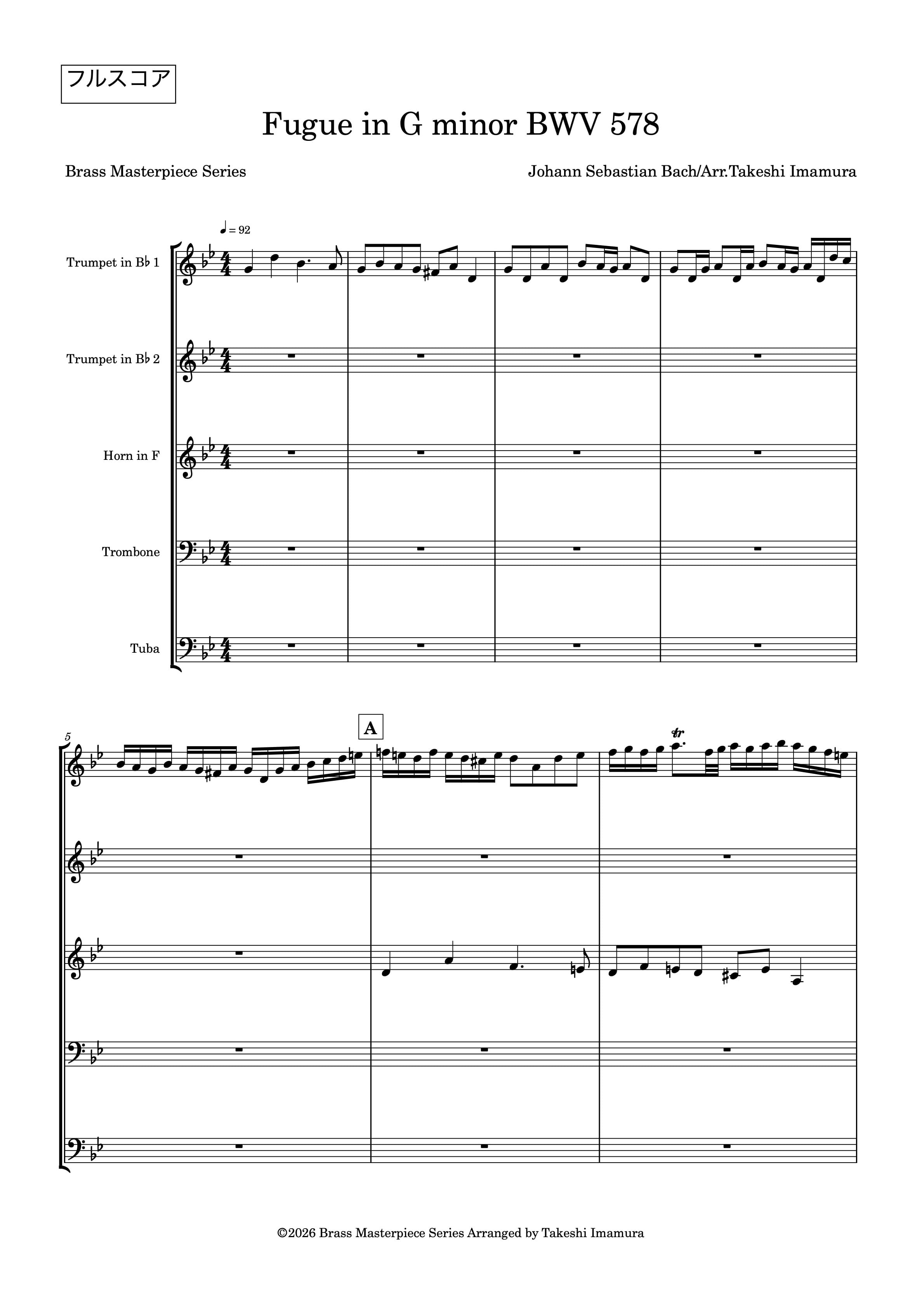 『Fugue in G minor BWV578』金管五重奏