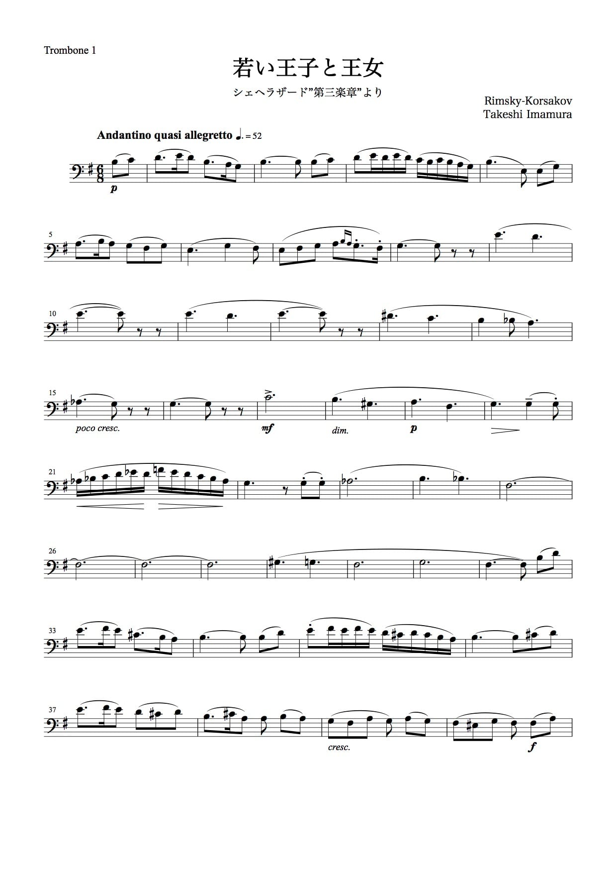 『若い王子と王女(シェヘラザード第三楽章)/リムスキー=コルサコフ』トロンボーン四重奏